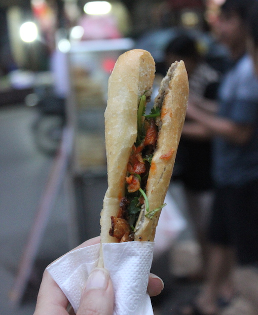 It all started with a Banh My Pate, a thin roll filled with crispy shallots, chile sauce, sliced cucumber, coriander and pate. A nice sized snack for a mere 5,000 Vietnamese dong, about a quarter.