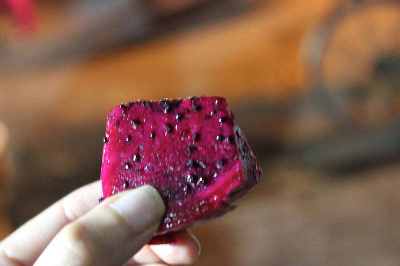 Here we snacked on rambutan, a fruit similar to lychee, but larger and sweeter. We also tried red dragon fruit and the tiniest bananas ever.