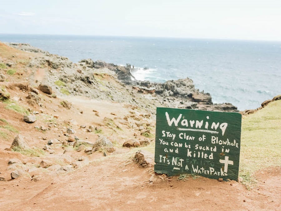 There are two warning signs posted that you should pay attention to. One is right outside of the parking lot and the other one is located right before you get onto the trail leading down to the blowhole.
