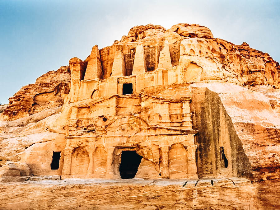 - The Palace Tomb: Last on our list of the Royal Tombs is the Palace Tomb and is one of the largest in Petra. It got its name due to its similarity with the Roman palace design of the Golden House of Nero. Another fun fact is that the Palace Tomb is one of the structures in Petra that is half-carved and half-built, especially the upper parts. Regardless of this, it is still considered one of the finest monuments in Petra.