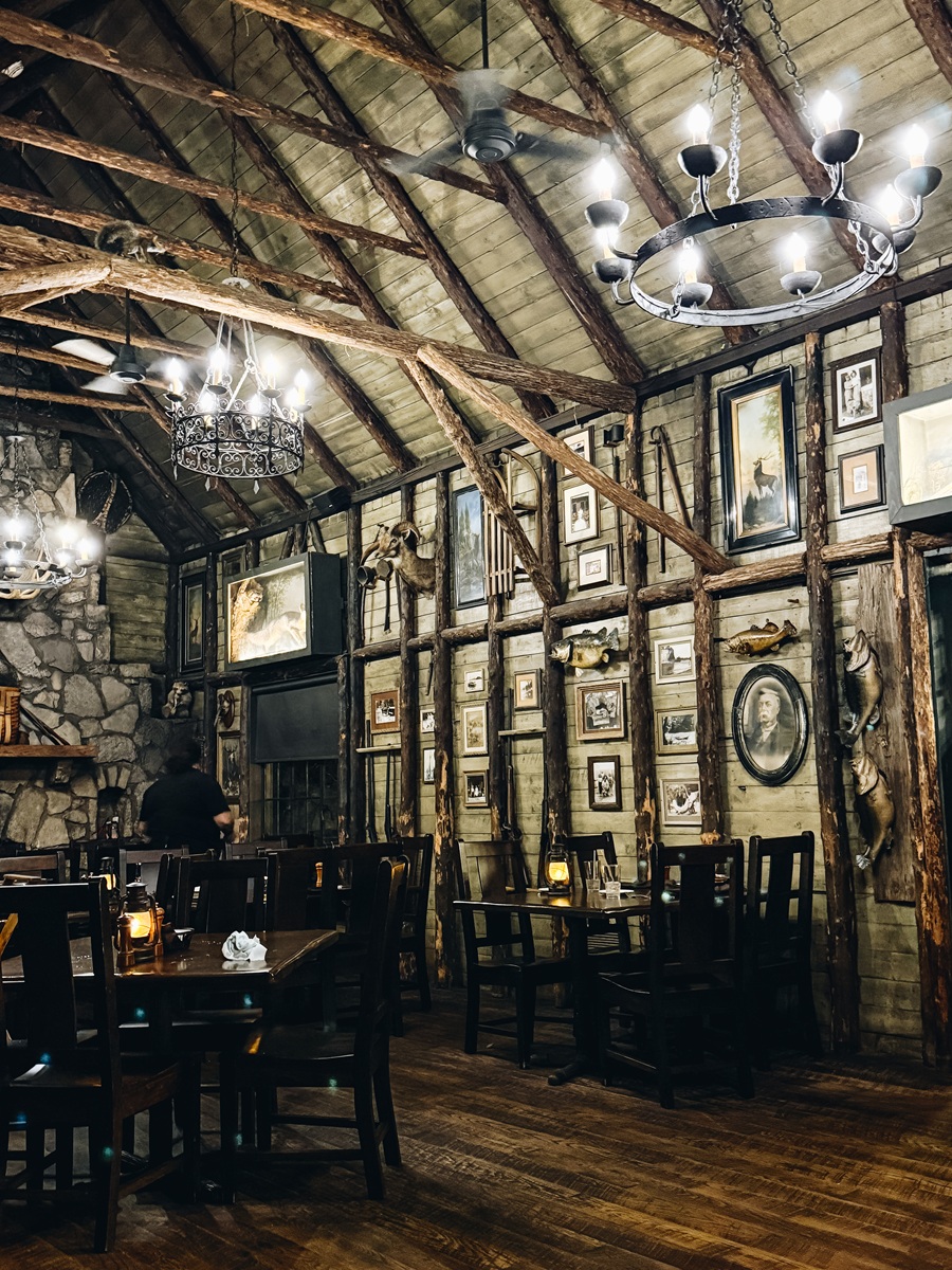 For a relaxed yet memorable evening, head to Devil’s Pool Restaurant at Big Cedar Lodge. The atmosphere is warm and inviting, with rustic interiors featuring hand-wrought metal chandeliers, antique furnishings, and a beautiful 100-year-old mahogany bar as the centerpiece.