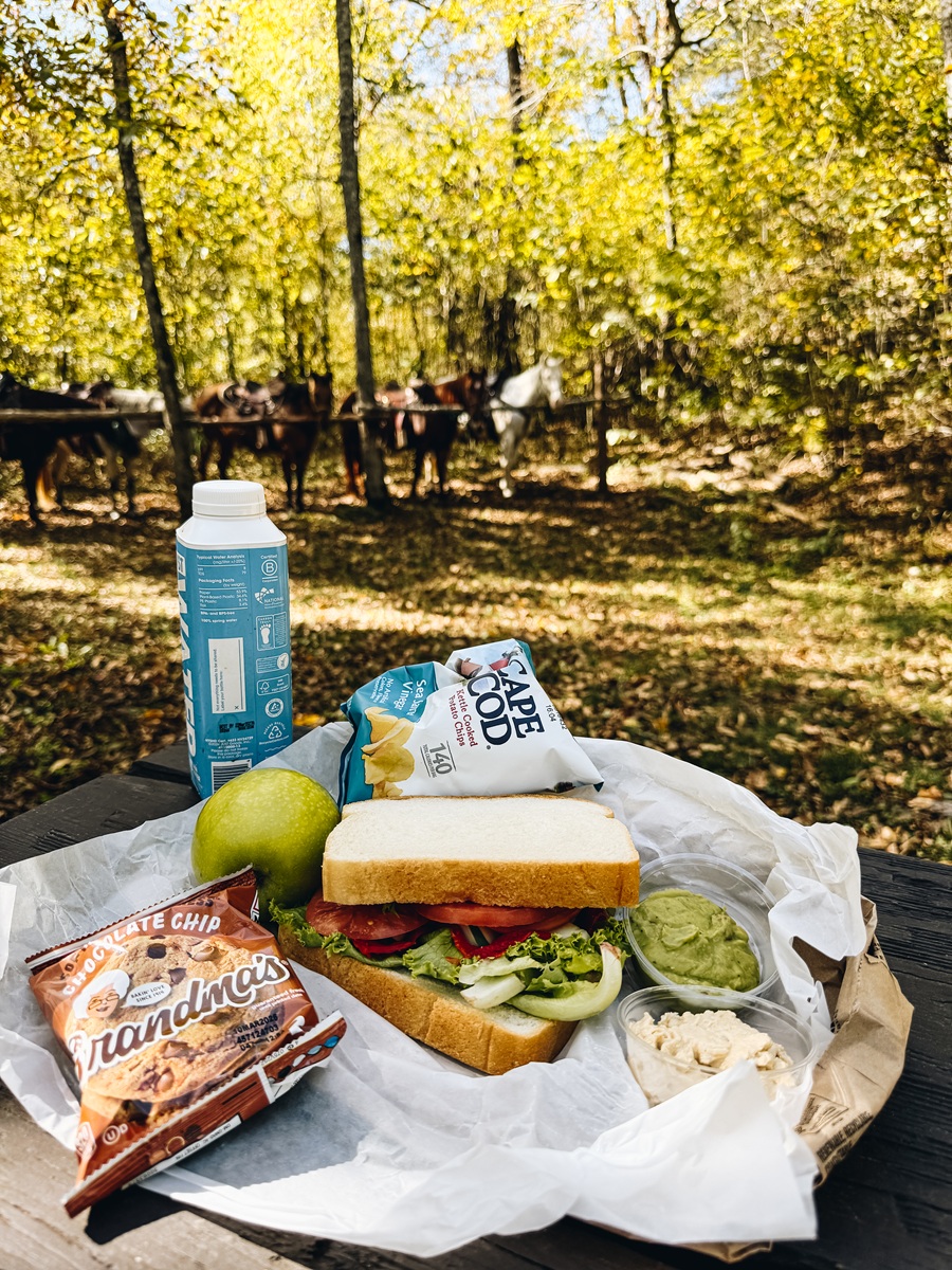 For my 2½-hour ride I was paired with a horse named Rip (yes, like the Yellowstone cowboy, and he had just as much personality). The trail meandered through shaded ridges, crosses gentle streams, and follows easy inclines, offering plenty of opportunities to appreciate the canyon’s natural beauty. Halfway through, we stopped at a scenic picnic area for lunch, which included a simple picnic meal with a deli sandwich, chips, cookies, and an apple (which I naturally saved for Rip).