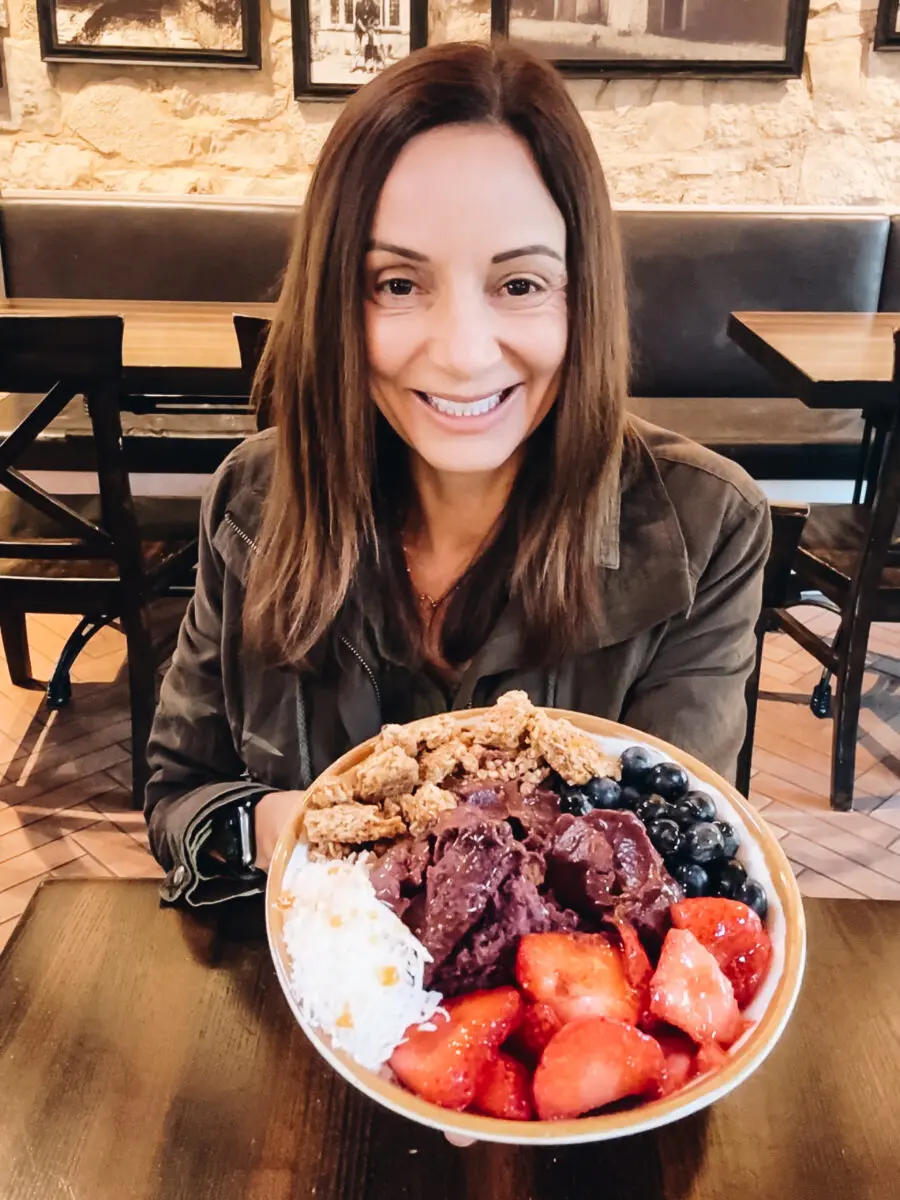 The menu features smoothies, specialty coffees, and light breakfast fare. I opted for the açaí bowl, which was loaded with fresh fruit, açaí sorbet, granola, and coconut flakes.