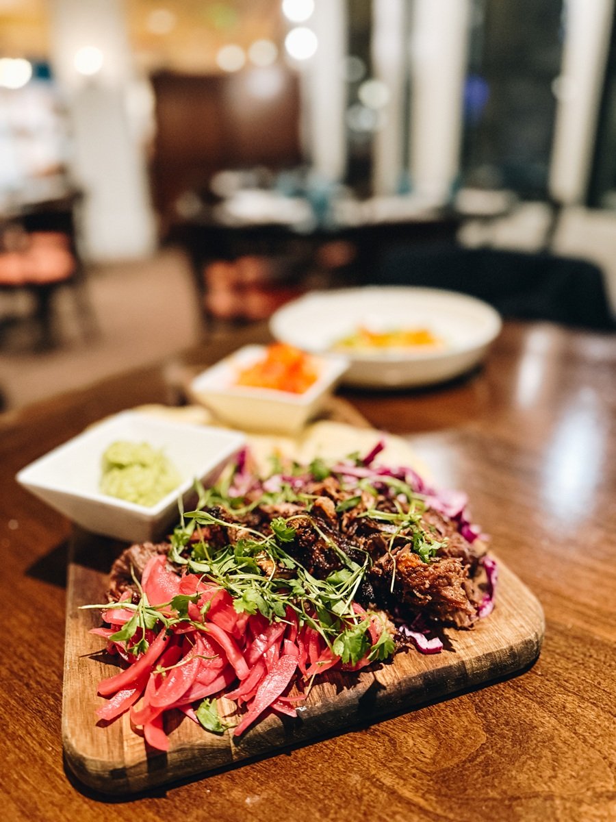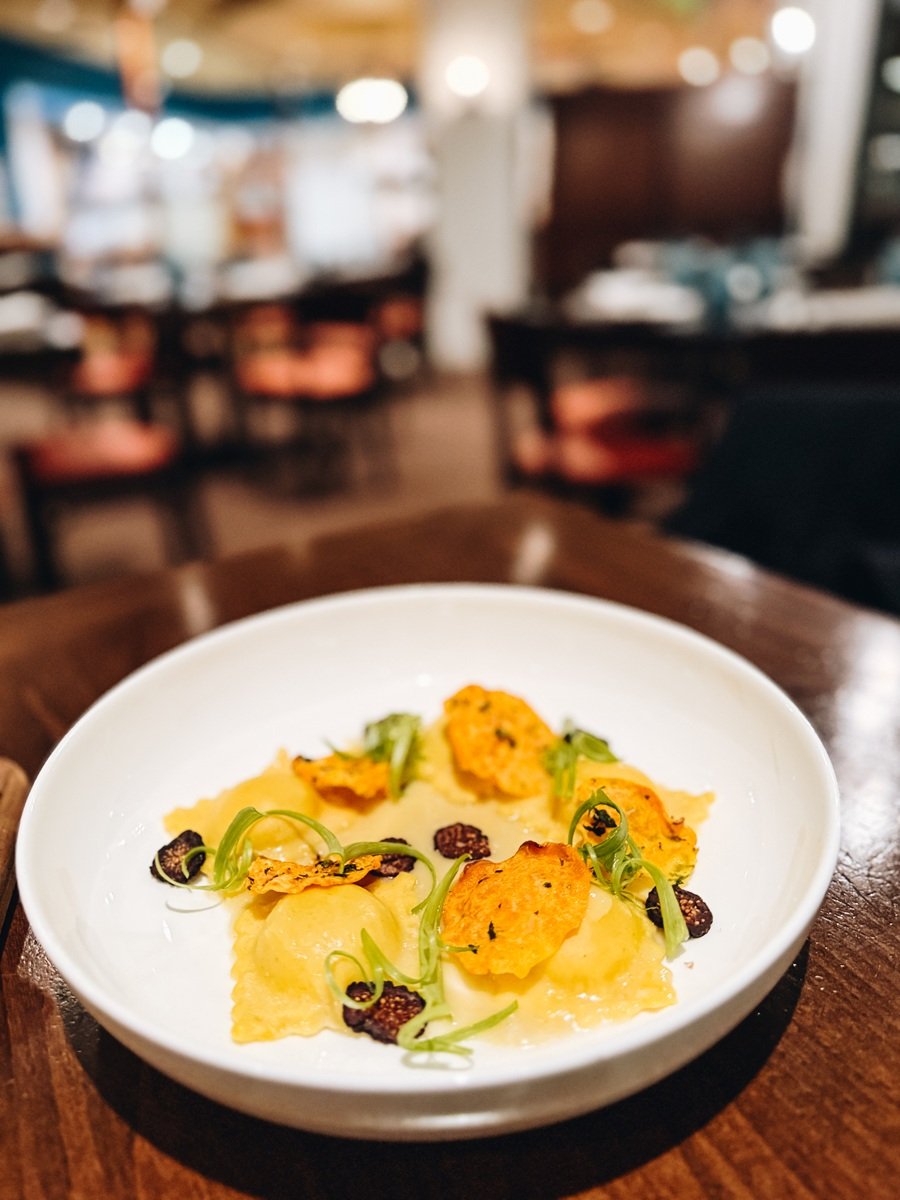 We sampled a little bit of everything (as per usual!), but a few dishes stood out: the Moroccan-spiced tuna tataki with a refreshing cantaloupe cucumber salad (my favorite of the night), sweet potato ravioli drizzled with sage brown butter and topped with figs, and a BBQ lamb gyro that put a playful twist on a classic.